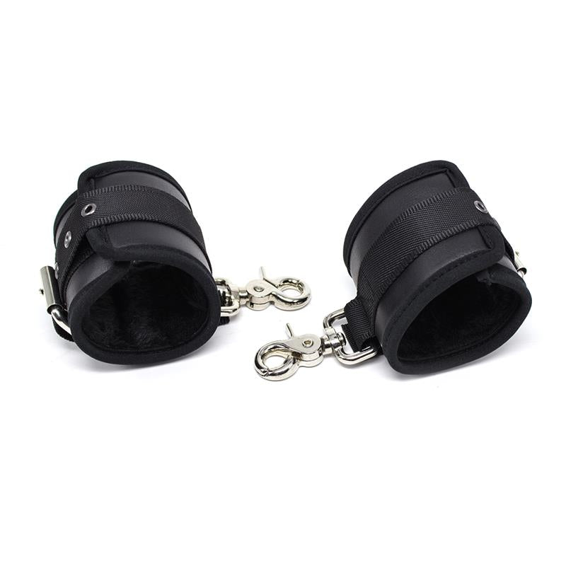 Esposas para los más atrevidos. Cuentan con materiales suaves pero firmes, su hebilla las hace totalmente ajustables y además, unos mosquetones de gran tamaño las hacen ideales para usar en la cama y otros objetos, sin necesidad de usar correas o cadenas.